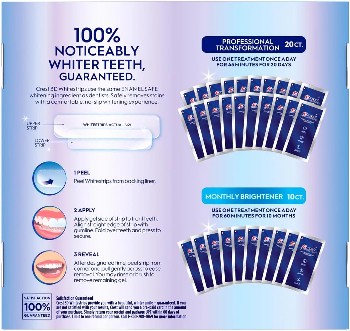 Crest 3D White Strips Professional Effects Advanced 40 + 20 Strips Whitening Kit 30 Treatments