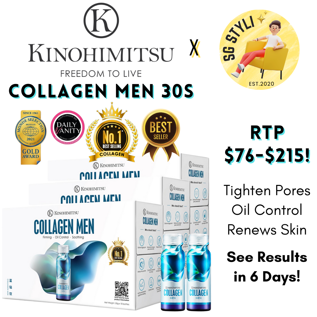 Infused with 5300mg of Collagen Pepetide as well as excellent moisturizing ingredients, Kinohimitsu Collagen Men Drink aids in plumping up skin, smoothening fine lines, regulating sebum secretion, healing facial scars and restoring youthful vitality to the skin.
